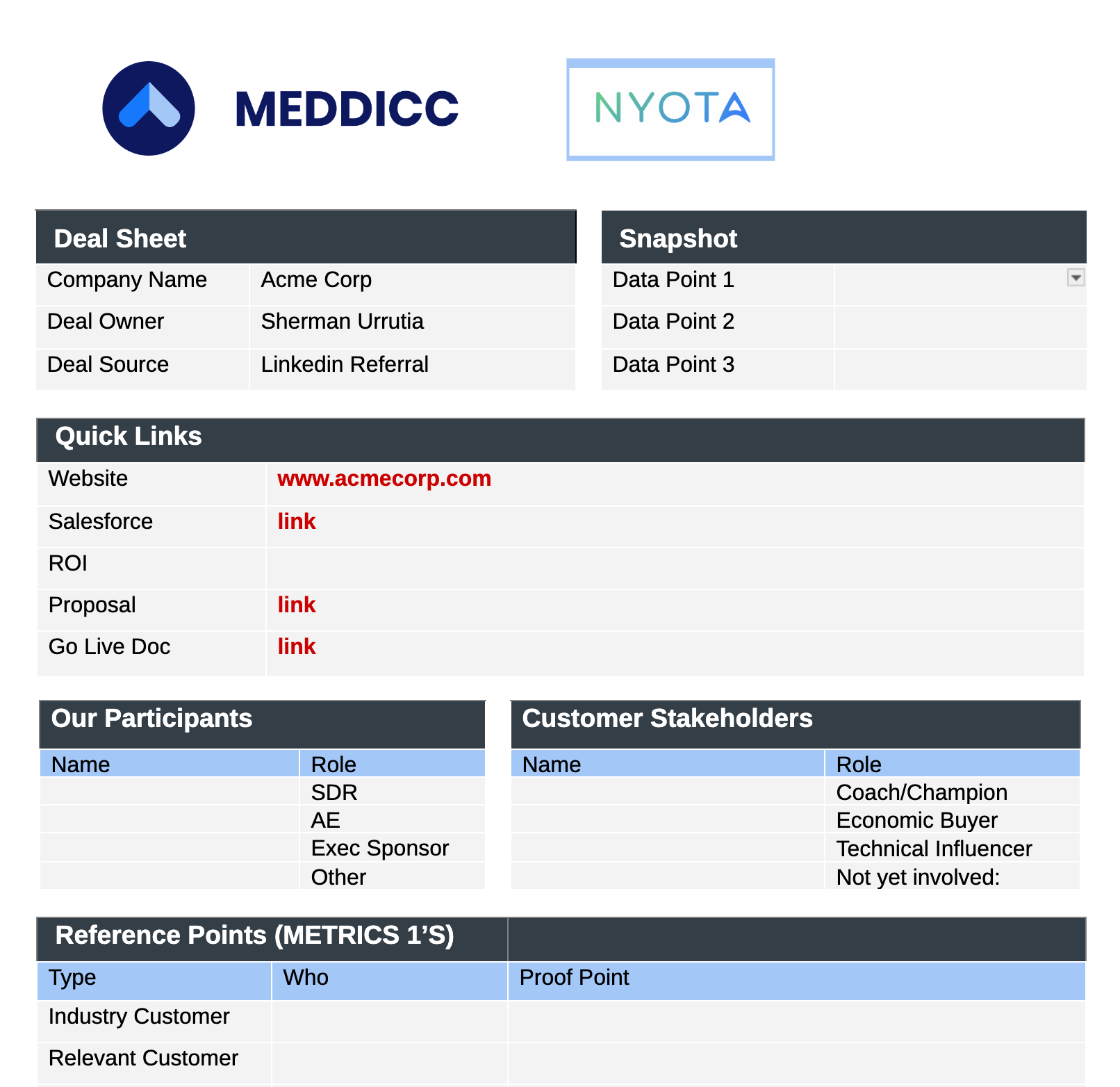 (You can learn more about the MEDDICC framework and get a copy of this deal sheet here: https://meddicc.com/resources/deal-sheet-download)
